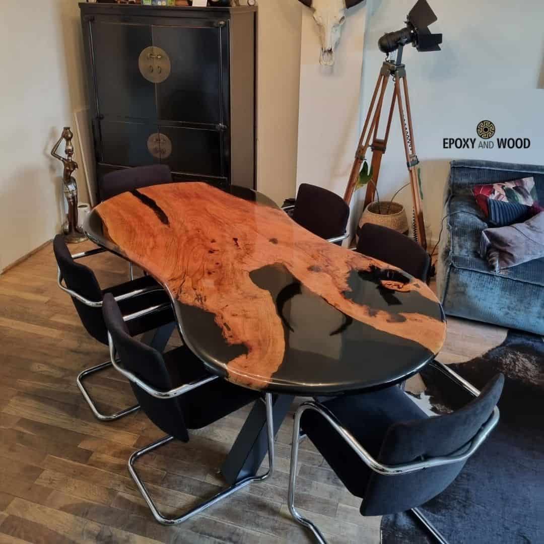 Bij Epoxy and Wood geloven we dat een tafel meer is dan alleen een functioneel meubelstuk; het is een artistiek statement dat je interieur verrijkt. Onze epoxy tafel, met een opmerkelijke vorm van een acht en afgewerkt met prachtige zwarte, transparante epoxy, is het perfecte voorbeeld van onze filosofie. Lees verder om te ontdekken waarom onze dinertafel epoxy de ultieme combinatie van functionaliteit en kunst is.
