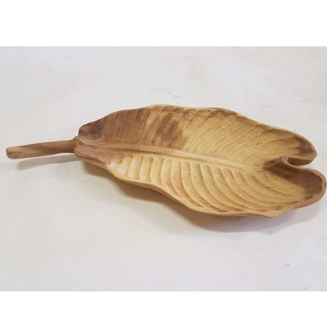 Decoratieve schaal gemaakt van Suar hout in de vorm van een Morusblad.